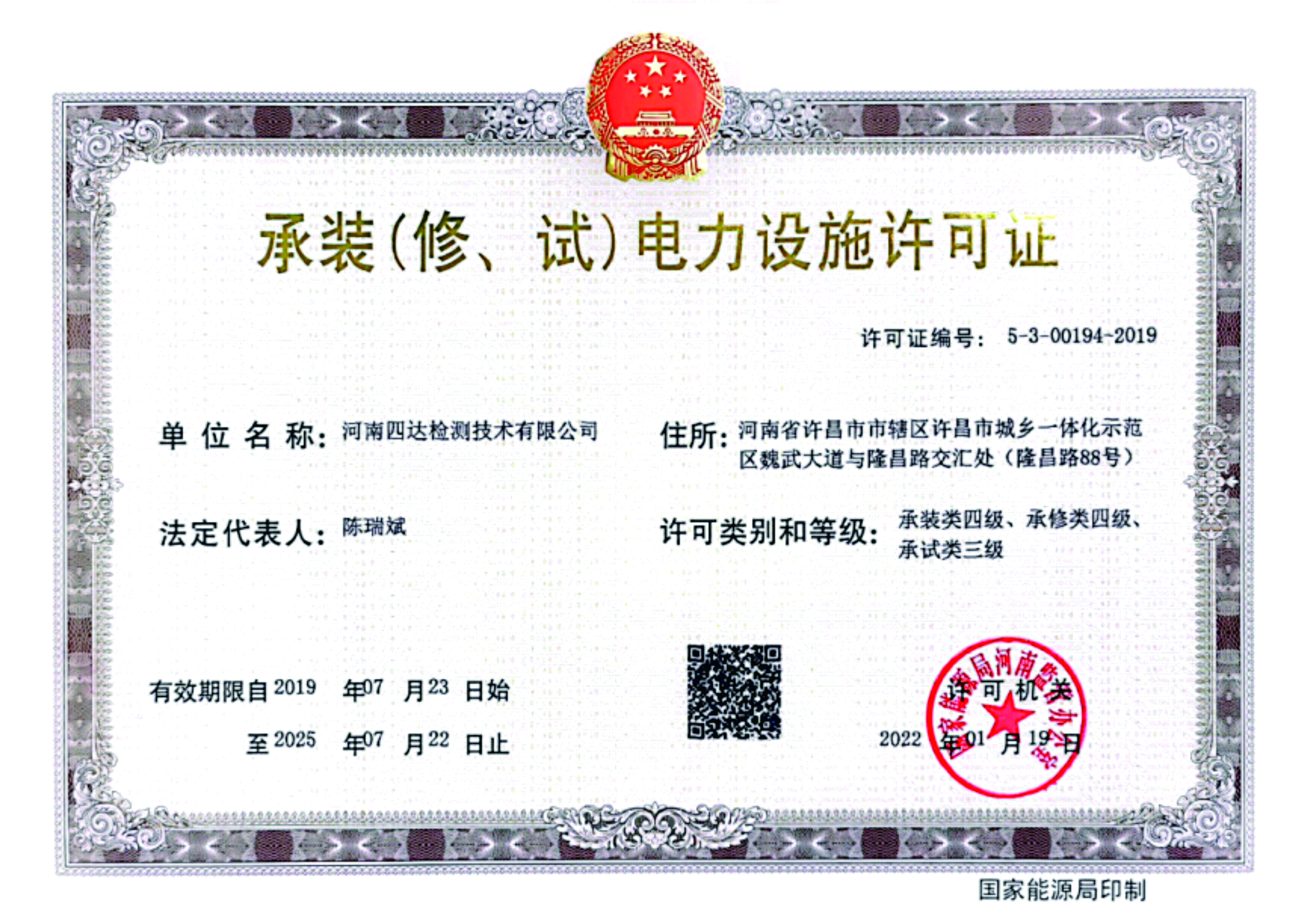 河南四达检测技术有限公司自2015年在河南许昌成立以来,作为国内领先的电力系统第三方检测机构,一直秉承着“用心创造更多感动”的服务宗旨以其独特的”检测在现场诊断在云端,专家在全国,服务在身边”的服务模式,为客户提供全方位的电力设备检验、检测校准、技术监督和技术咨询服务。
