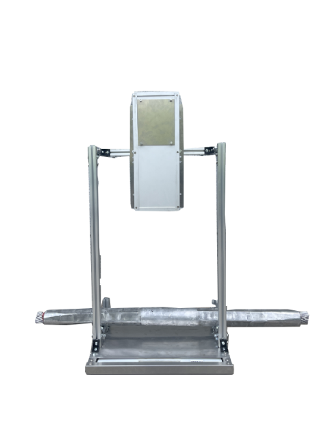 本装置是一套实用、简便的耐张线夹压接质量检测装置,采用铝合金材质,整机质量不超过40KG(含射线机及成像板),操作简单,检测效率高。在停电检修状态下,通过人工登塔的方式挂载至输电线路金具待检测区域,地面人员通过遥控器或客户端控制射线拍摄,成像图片通过无线的方式回传至本地电脑,通过专用的算法处理软件,进行图片灰度处理,可清晰观察到输电线路压接金具的内部结构以及存在的隐患。操作简单,检测效率高,为电网安全可靠运行提供有力的技术支撑。